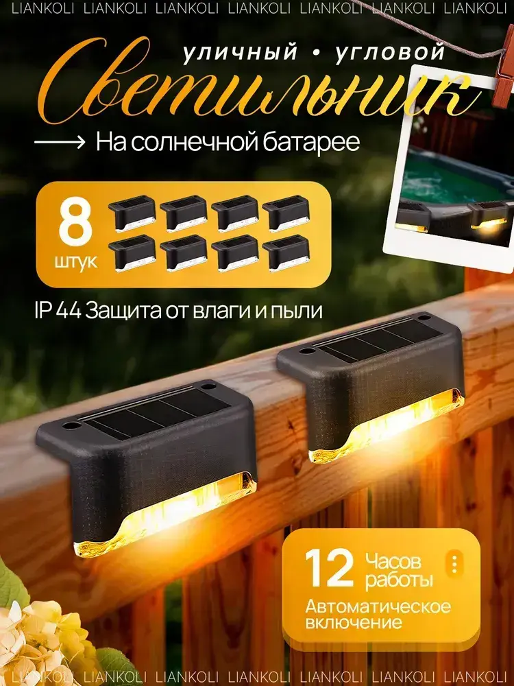 Уличные угловые светильники, на солнечной батарее 8 шт, черный цвет, Liankoli