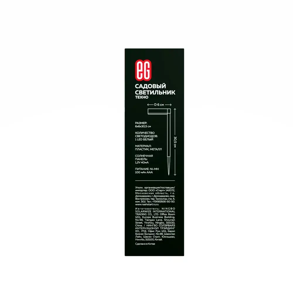 Уличный фонарь светильник на солнечной батарее садовый Техно Еврогарант белый свет