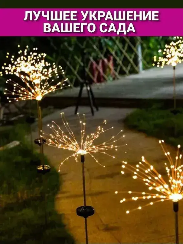 Уличный садовый светильник фейерверк(Одуванчик) на солнечной батарее 2шт