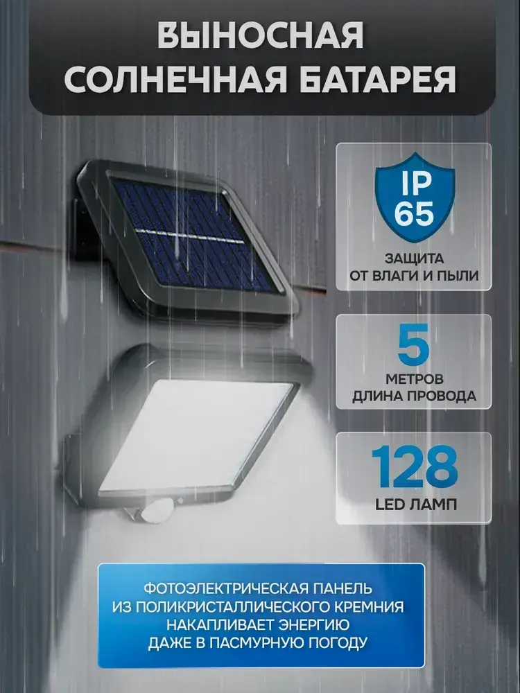 Уличный светильник на солнечной батарее с датчиком движения настенный