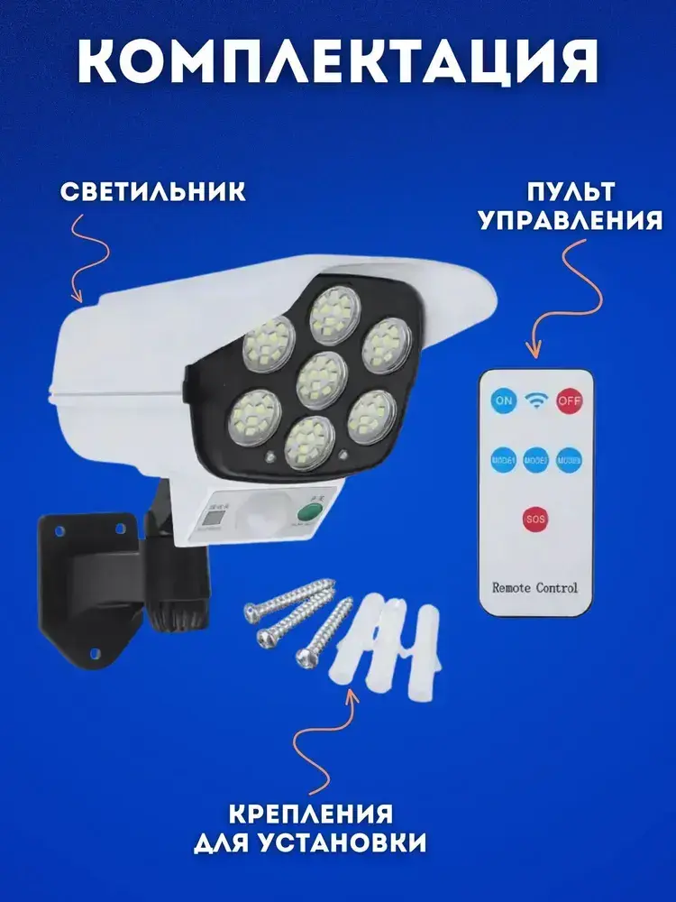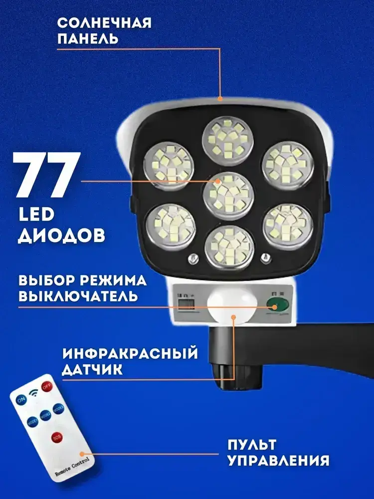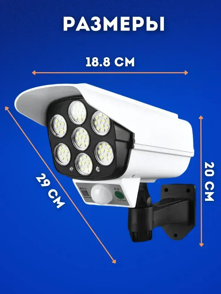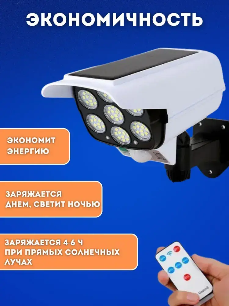 Уличный светильник на солнечной батарее с датчиком движения освещения и пультом управления муляж камеры видеонаблюдения