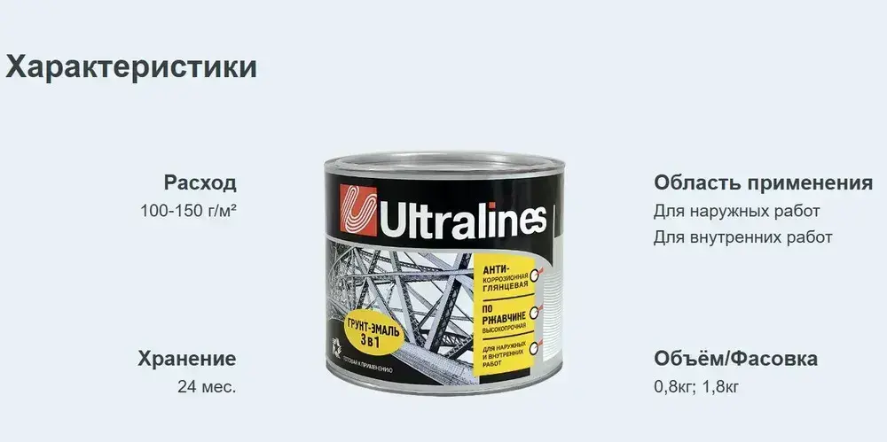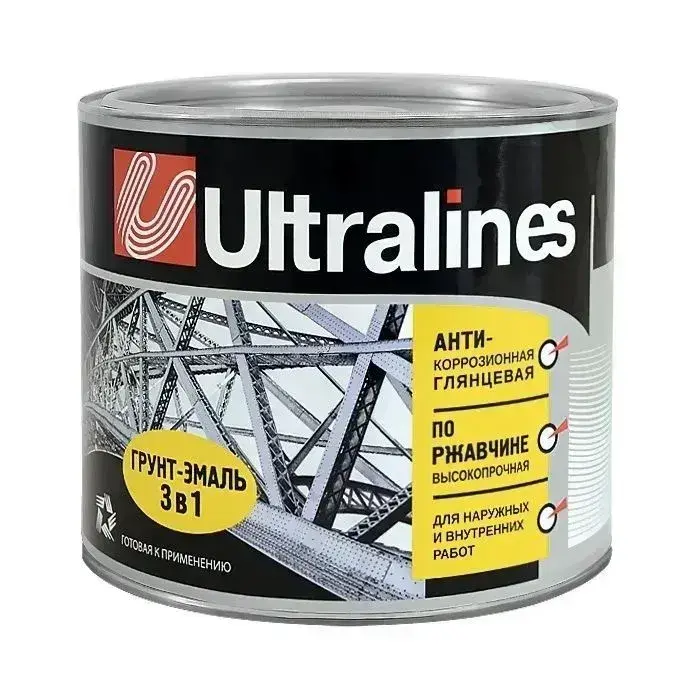 УЛЬТРА ЛАЙНС Грунт-эмаль Гладкая, Быстросохнущая, Алкидная, Уретано-алкидная, Глянцевое покрытие, 1.8 кг, черный