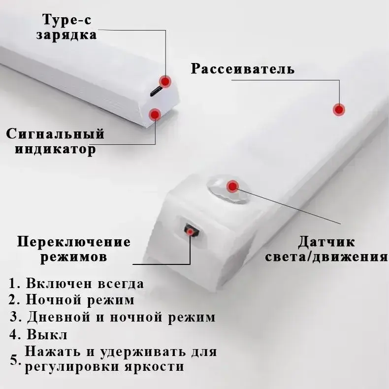 Умный ночник светильник 50 см. лампа на аккумуляторе с датчиком движения и датчиком света