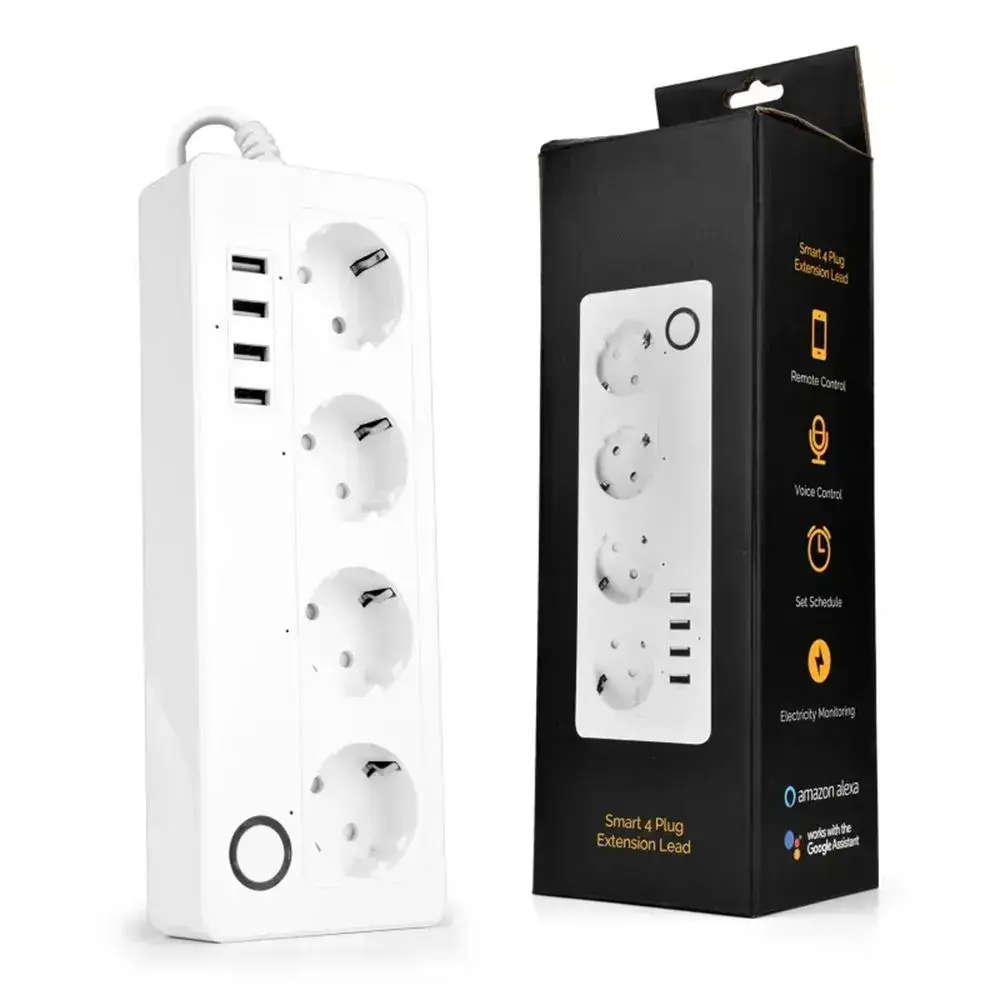Умный сетевой фильтр на 4 розетки с таймером и WiFi, 4 порта USB, умный дом, Алиса, Tuya, Smart Life
