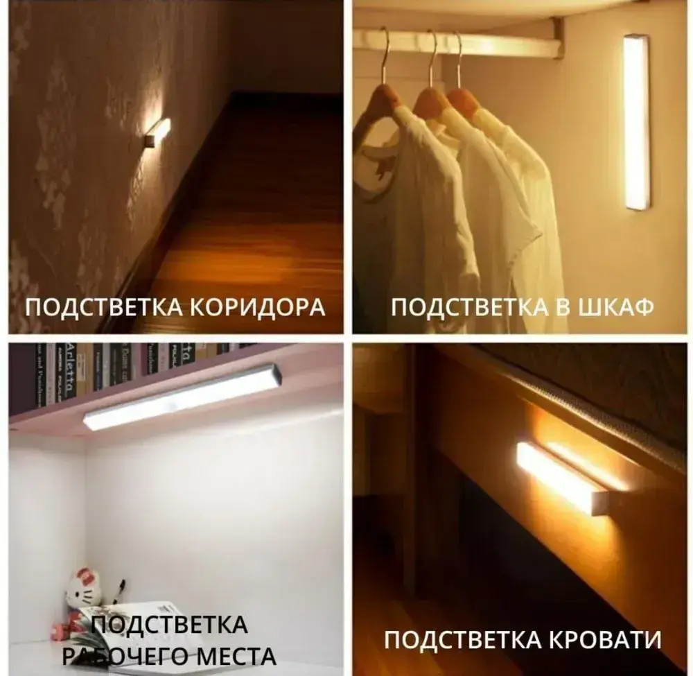 Умный светодиодный светильник с датчиком движения 20см белое свечение USB