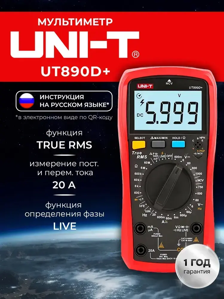 UNI-T UT890D+ Мультиметр цифровой универсальный, True RMS