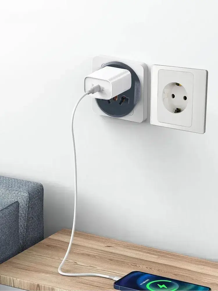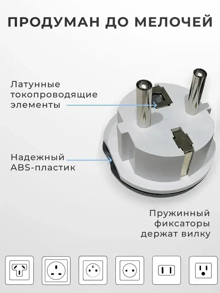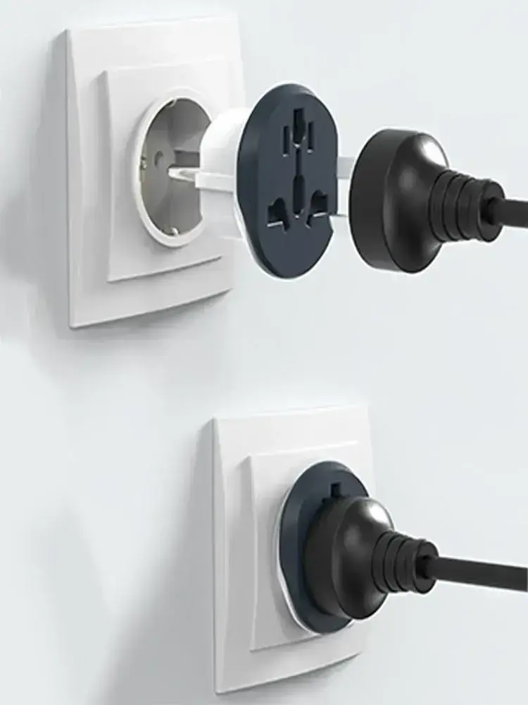 Универсальный адаптер-переходник с китайской вилки на российскую или евровилку, стильный чёрно-белый дизайн, компактный сетевой аксессуар для путешествий и дома
