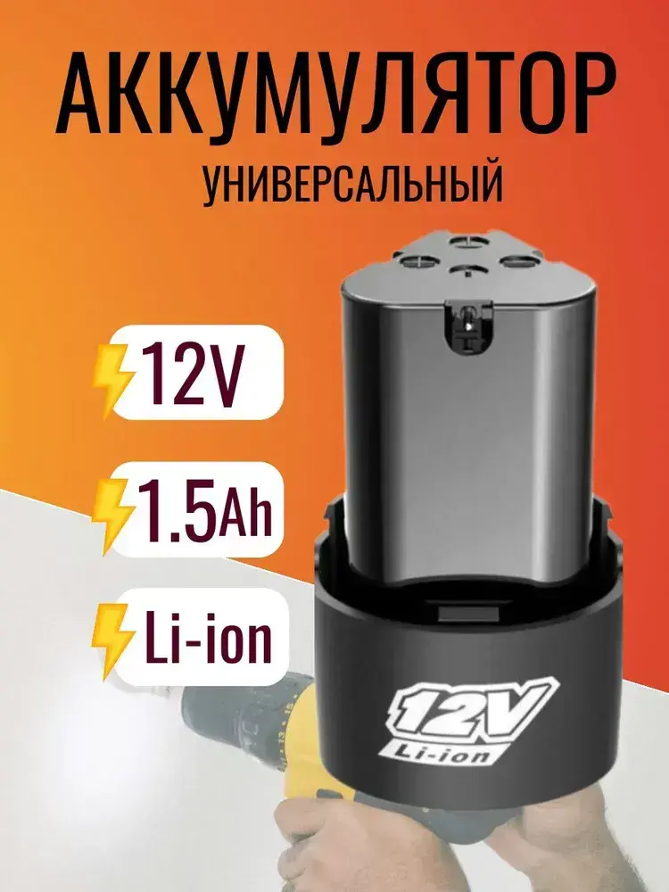 Универсальный аккумулятор для дрели - шуруповерта li-ion 12V, 1500 mAh