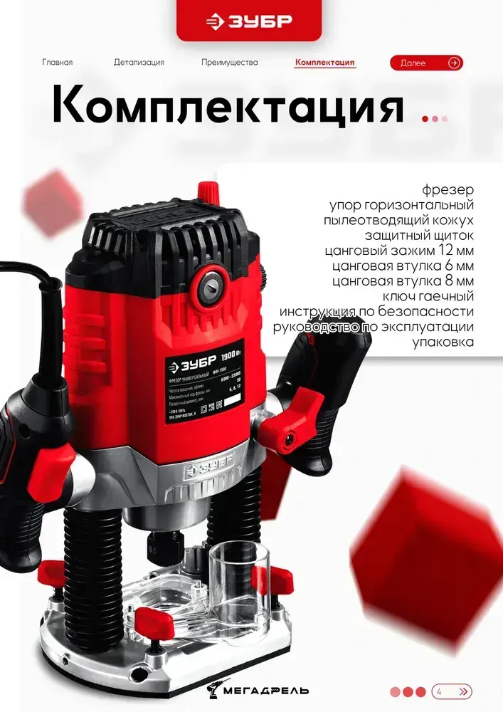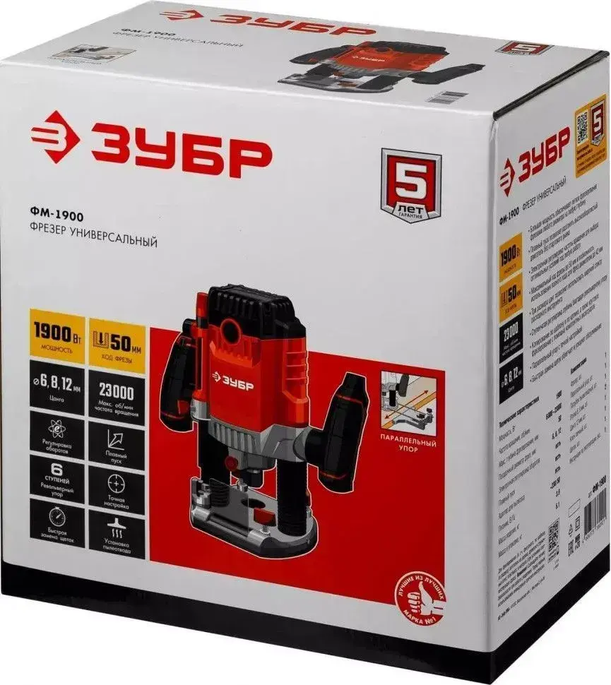 Универсальный фрезер ЗУБР, (Мощность 1900 Вт, мax число оборотов 23000 об/мин, рабочий ход 50 мм, мaх диаметр фрезы 42 мм) Инструмент по дереву