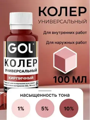Универсальный колер GOL №54 Кирпичный, колеровочная паста для изменения цвета краски, шпаклёвки, лака на стенах, фасаде