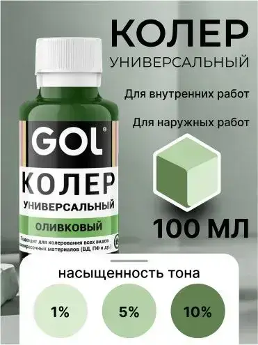 Универсальный колер GOL №75 Оливковый, колеровочная паста для изменения цвета краски, шпаклёвки, лака на стенах, фасаде