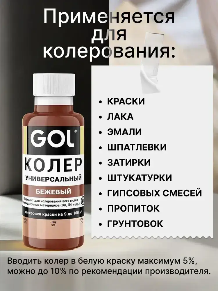 Универсальный колер GOL №85 Бежевый, колеровочная паста для изменения цвета краски, шпаклёвки, лака на стенах, фасаде