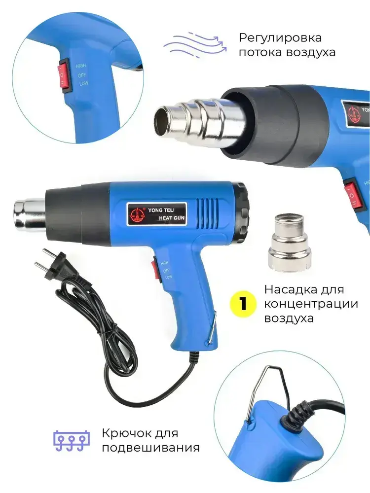 Универсальный паяльный фен 1600 Вт YTL-016/Портативный строительный термофен для пайки сетевой