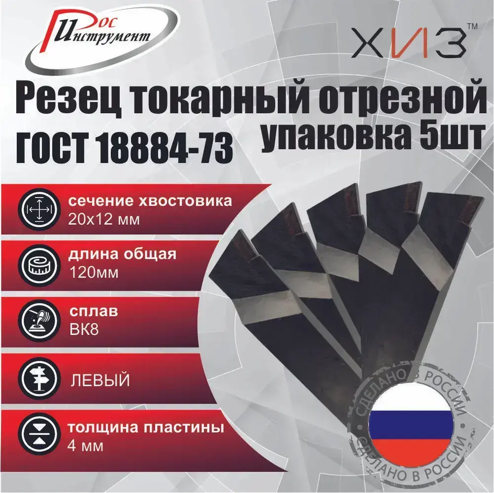 Упаковка резцов токарных отрезных 5штук 20*12*120 ВК8 ЛЕВЫХ ГОСТ 18884-73