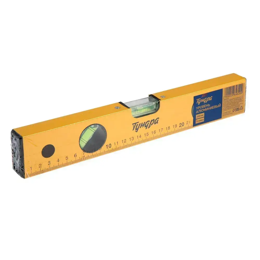 Уровень алюминиевый Тундра, 3 глазка, линейка, 300 мм