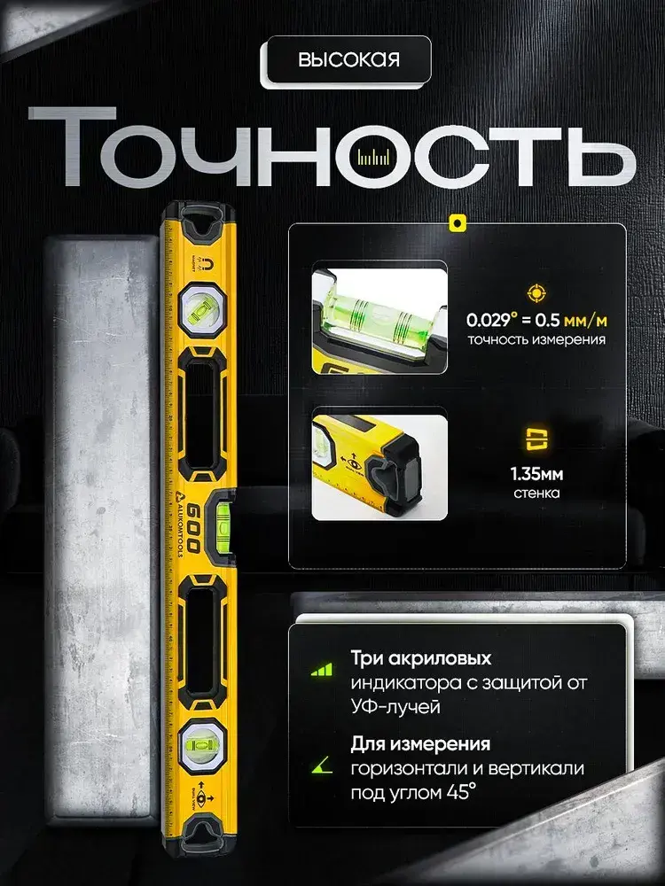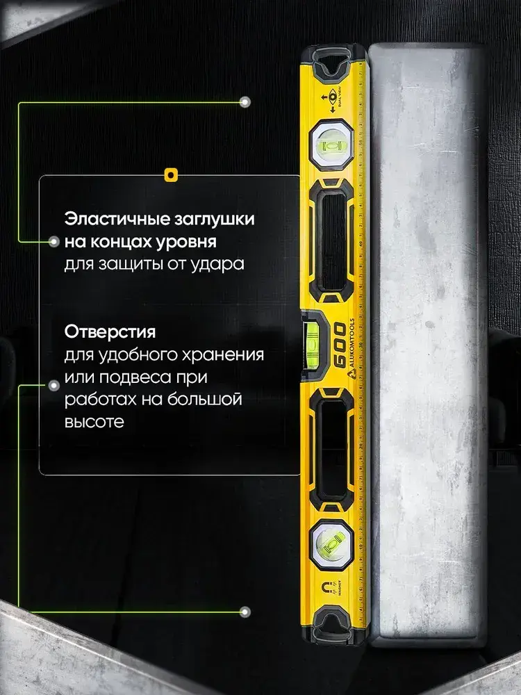 Уровень магнитный усиленный, 600 мм, 3 индикатора, фрезерованный, зеркальный глазок