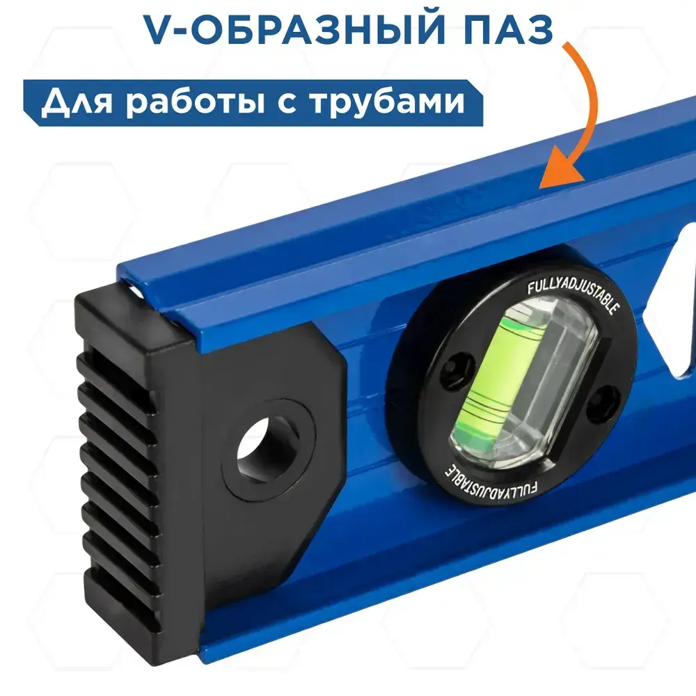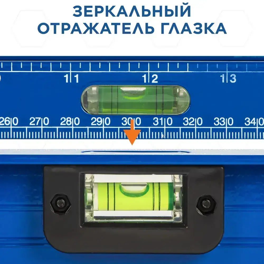 Уровень строительный 2000 мм КОБАЛЬТ, профиль 25x60 мм, 3 глазка, 2 ручки, V-паз, точность 1 мм/м