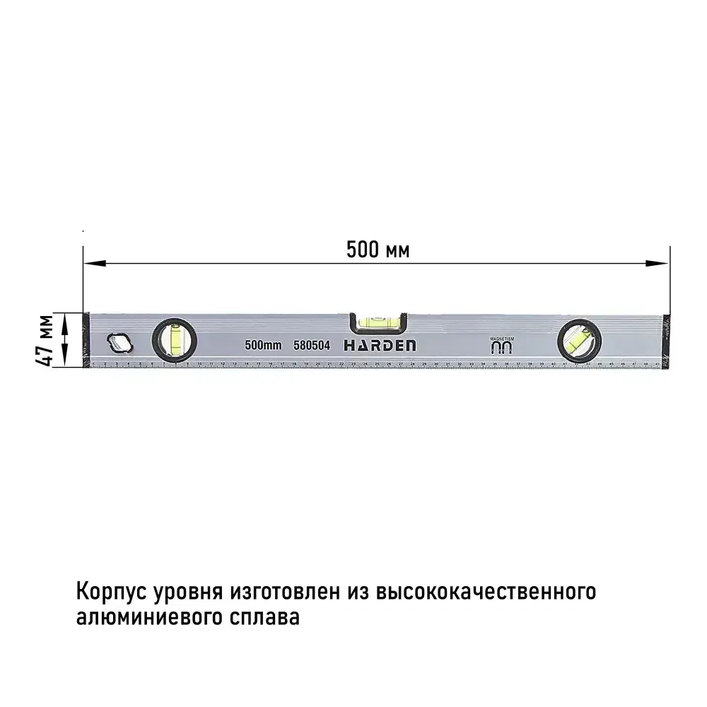 Уровень строительный магнитный с 3-мя глазками 500 мм HARDEN