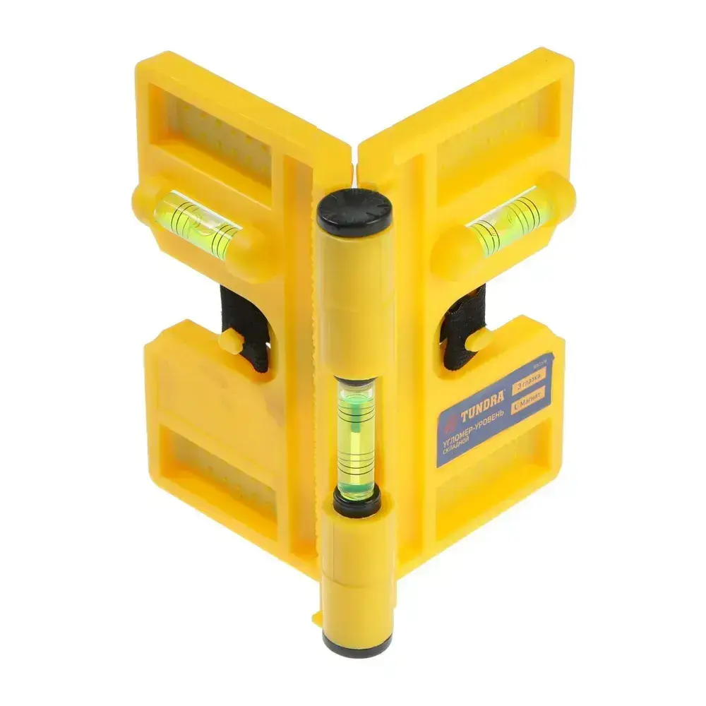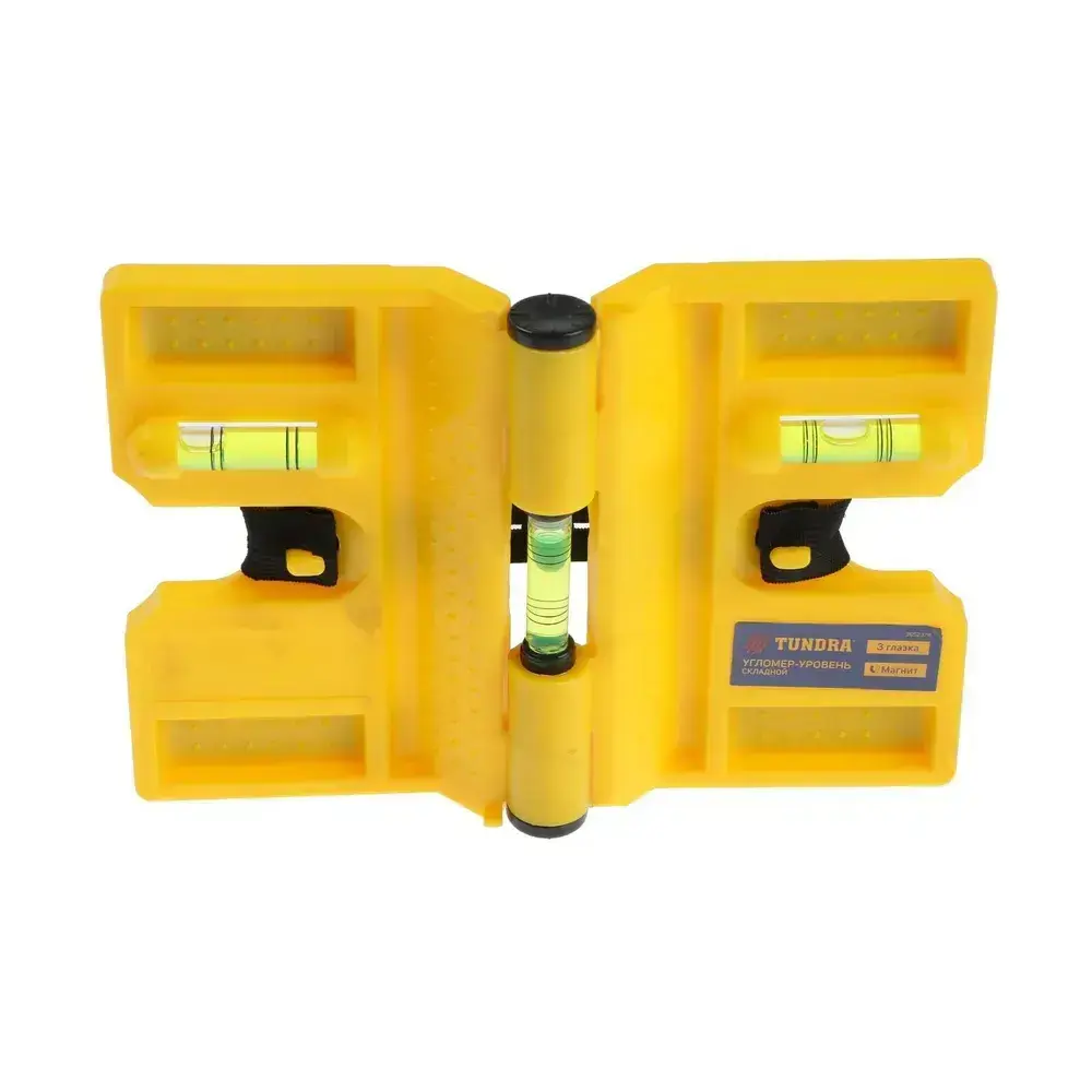 Уровень угловой магнитный ТУНДРА, складной, 3 глазка