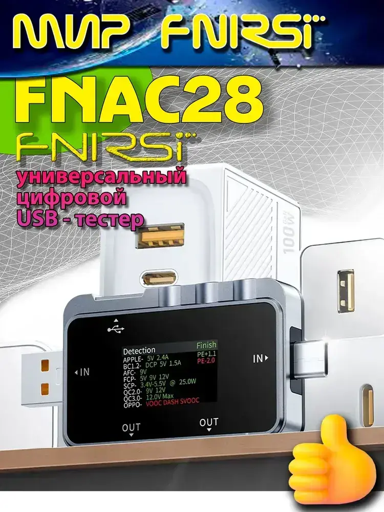 USB-тестер FNIRSI FNAC-28 напряжения тока и мощности / цифровой портативный