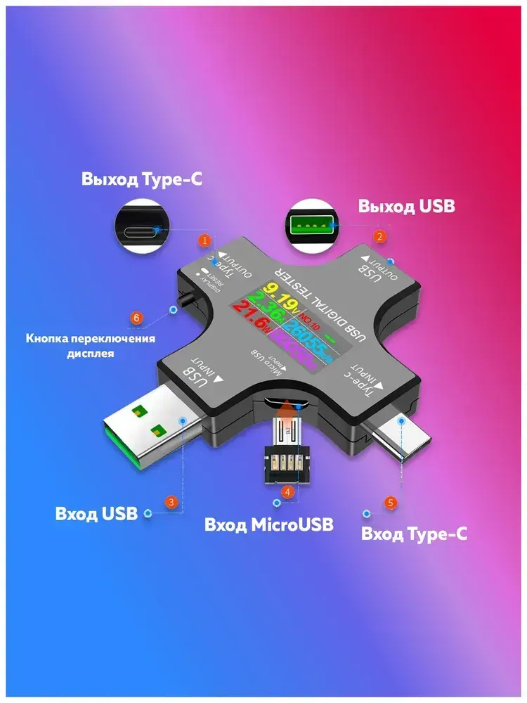USB Type-C тестер для мобильных устройств, измерение силы тока, напряжения, емкости акб