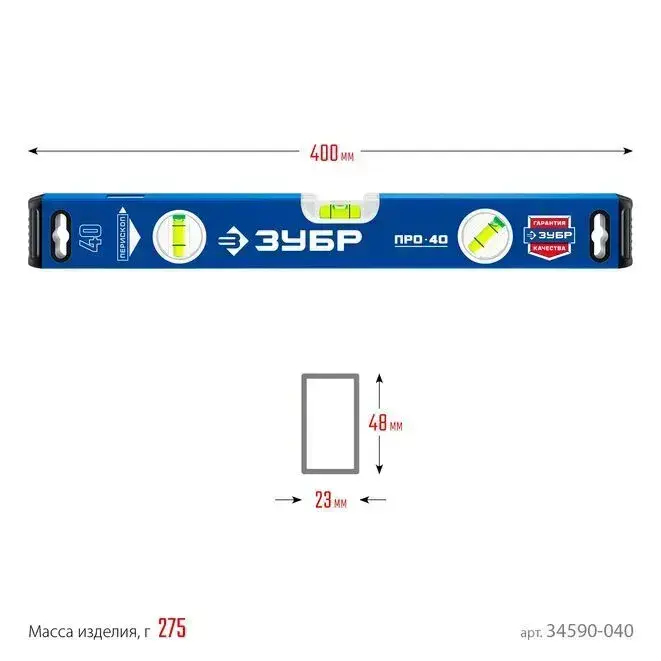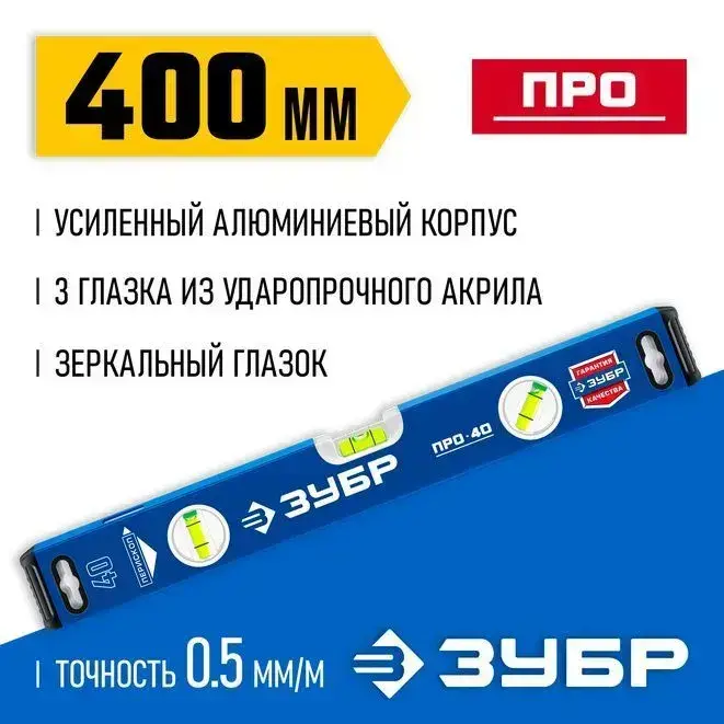Усиленный уровень с зеркальным глазком, ЗУБР Профессионал 400 мм, 34590-040