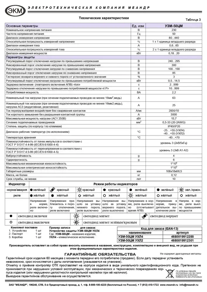 Устройство защиты многофункциональное УЗМ-50ЦМ, Меандр
