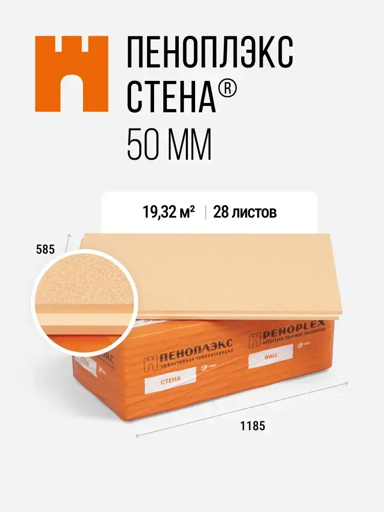 Утеплитель XPS ПЕНОПЛЭКС СТЕНА 50мм (28 плит) - под штукатурную отделку 50х585х1185мм - 4 упаковки