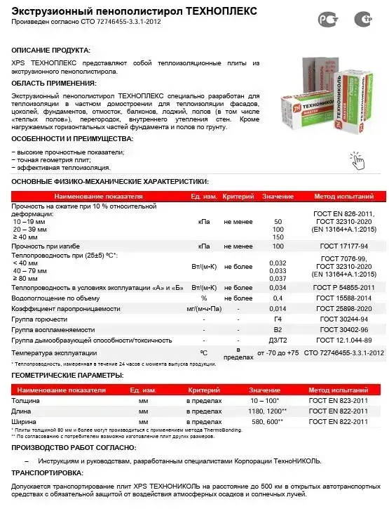 Утеплитель XPS ТЕХНОПЛЕКС 50 мм. 1 уп. (8 плит/5,48м2) из пенополистирола для фасада, стен, крыши, пола
