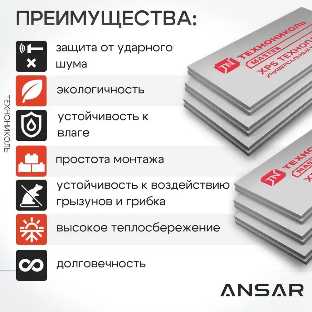 Утеплитель XPS ТЕХНОПЛЕКС 50 мм, 10 уп. (80 плит/54,8м2) из пенополистирола для фасада, стен, крыши, пола