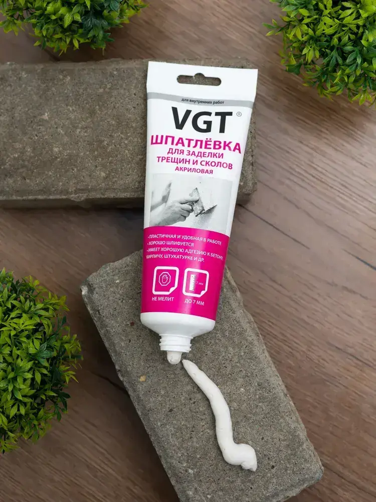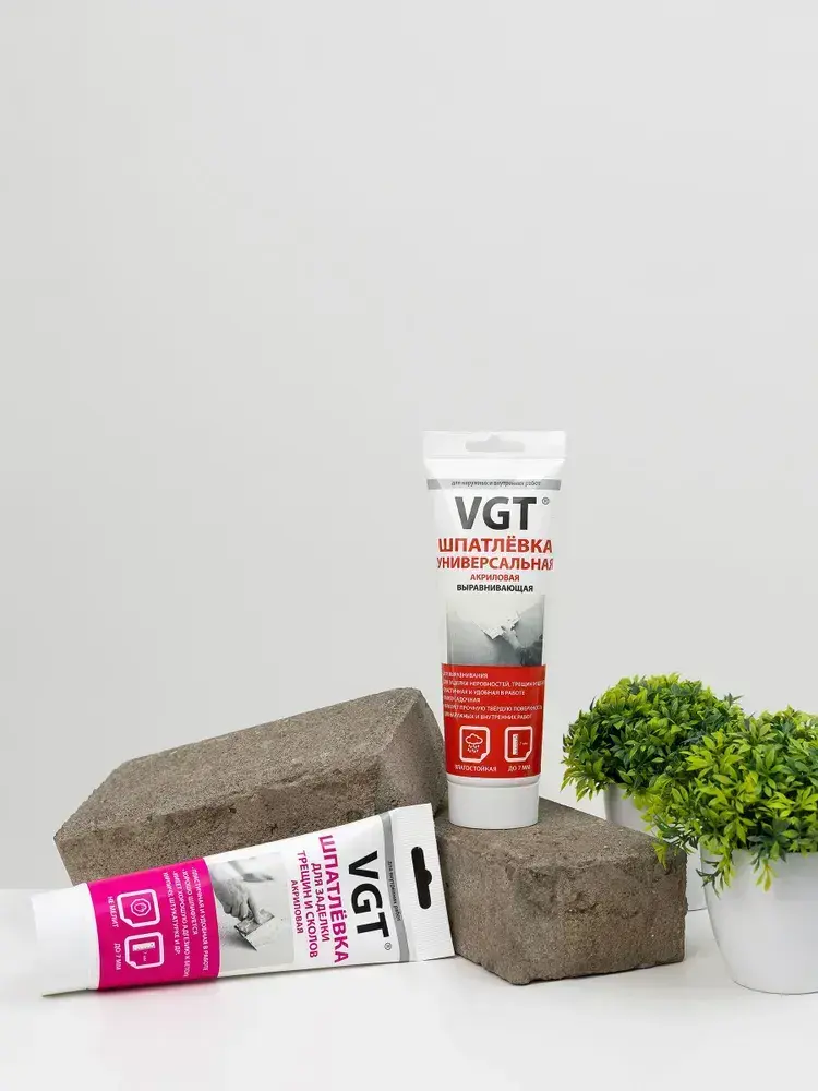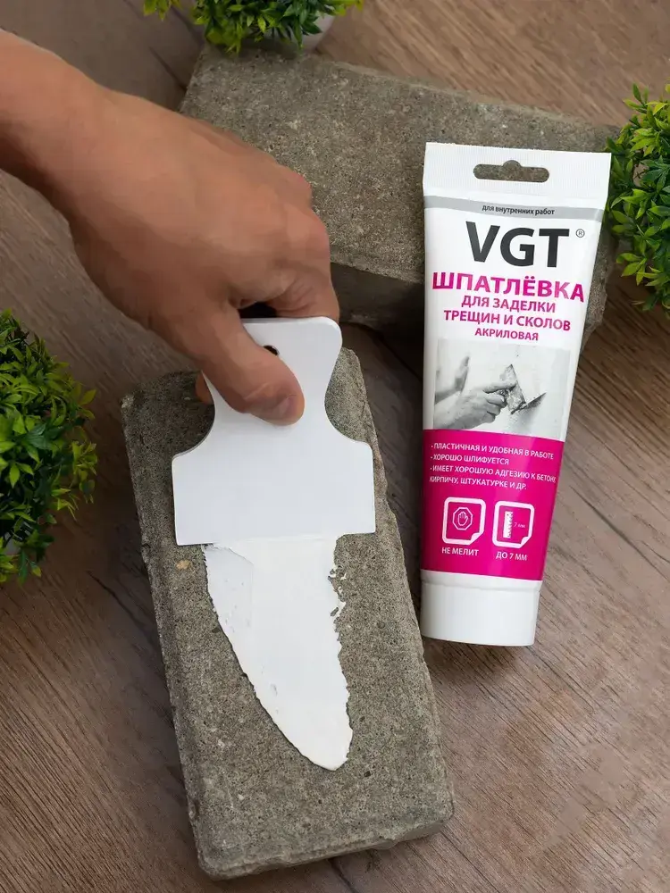 VGT (ВГТ) Шпатлевка акриловая для внутренних работ, заделки неровностей, трещин и сколов, 330 г, Цвет белый
