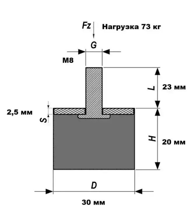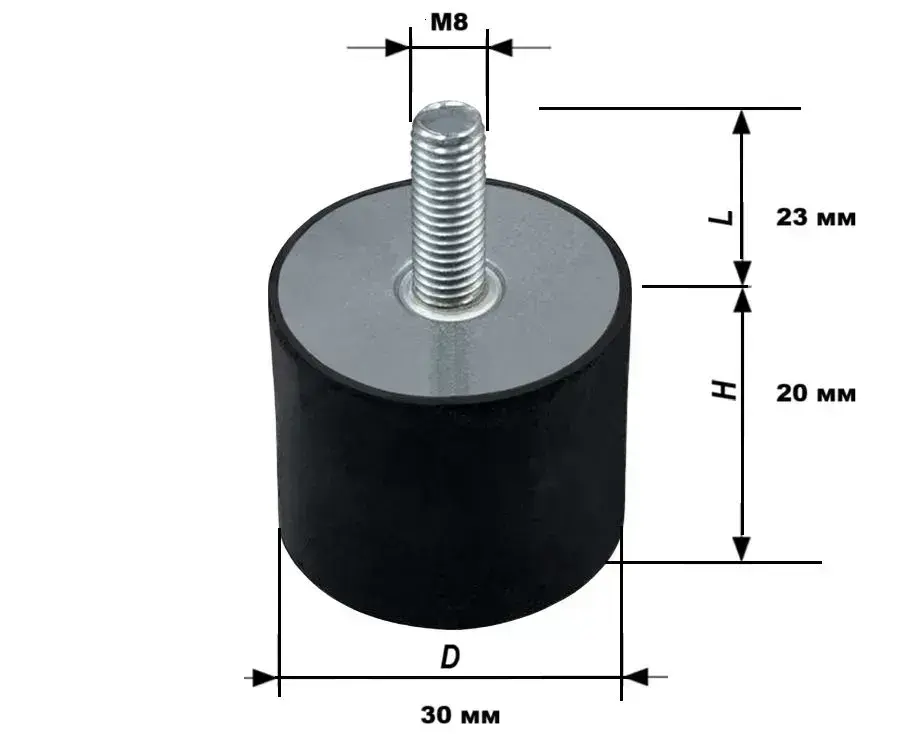Вибро-опора цилиндрическая с наружной резьбой М8, тип EC (D). DR83020M823