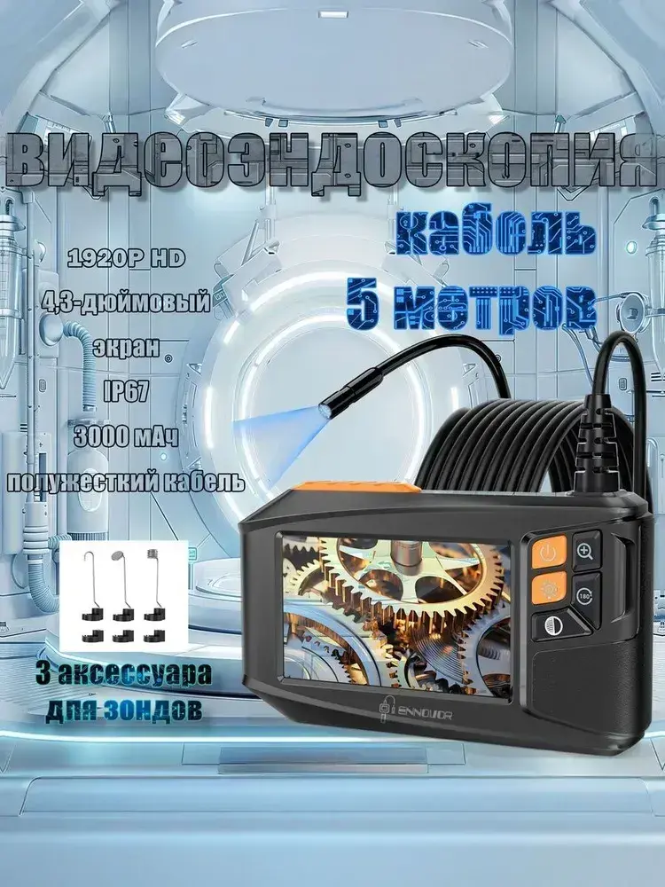 Видеобороскоп с 4,3-дюймовым дисплеем, изображением высокой четкости 5M 1920*1080P, подходит для обслуживания автомобилей и обнаружения трубопроводов