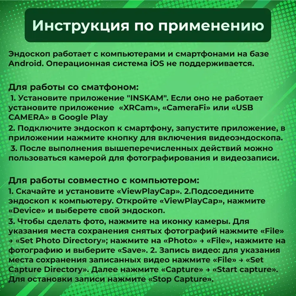 Видеоэндоскоп ATR для смартфона и ПК. USB / Micro USB / Type-C, 2 метра, Водонепроницаемый (жесткий кабель)