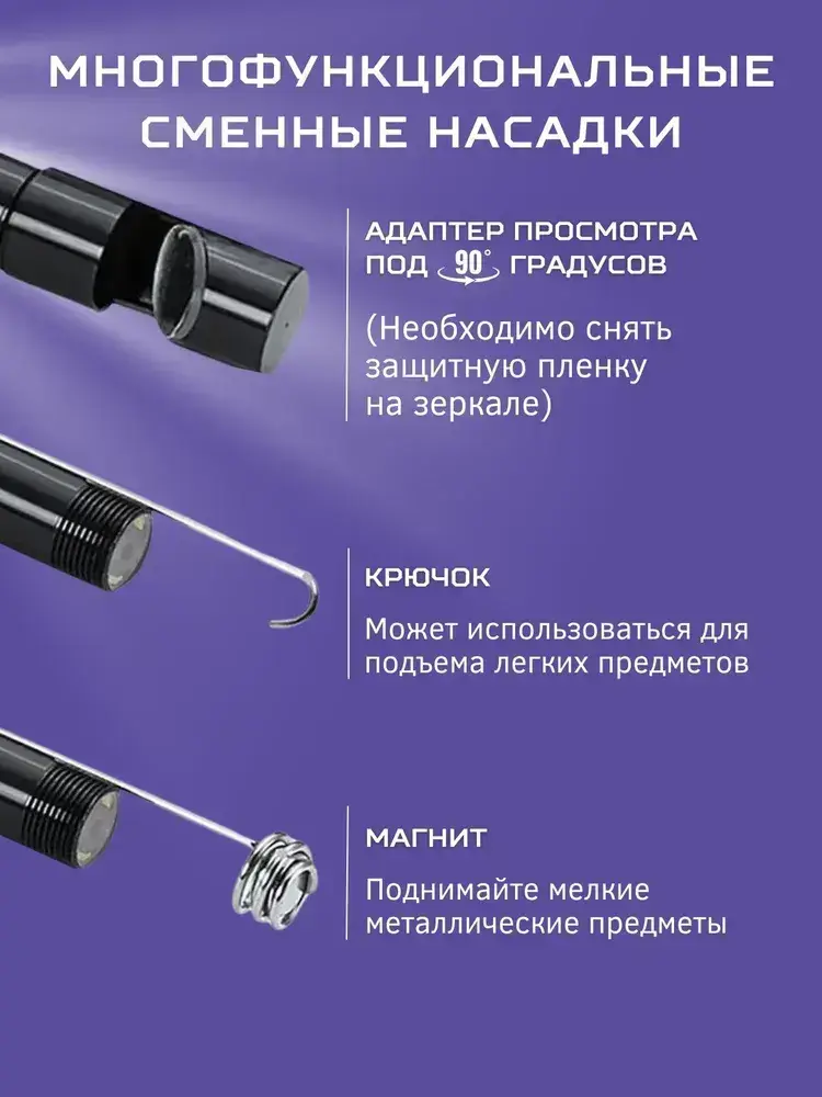 Видеоэндоскоп для смартфона / Эндоскоп ЖЕСТКИЙ шнур для смартфона и для компьютера для Android, 2 метра, microUSB, USB, Type-S водонепроницаемый