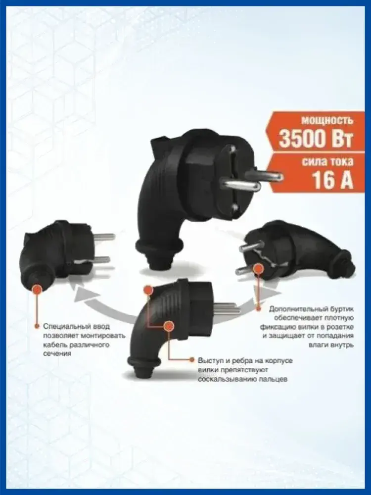 Вилка угловая UNIVersal c заземлением каучук 16А/250В/IP44