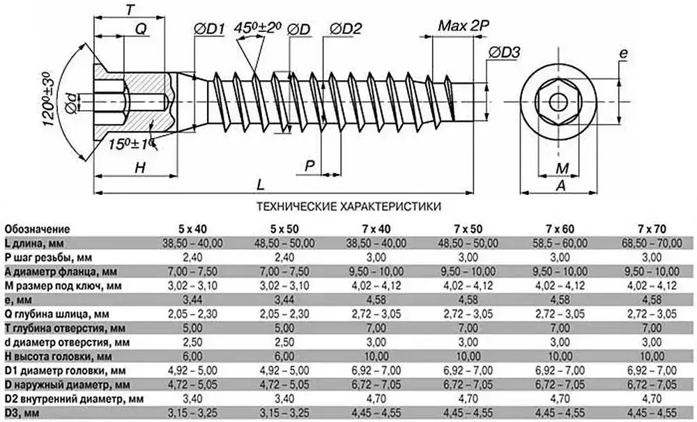 Винт конфирмат 7х50 под шестигранник, 100 шт.