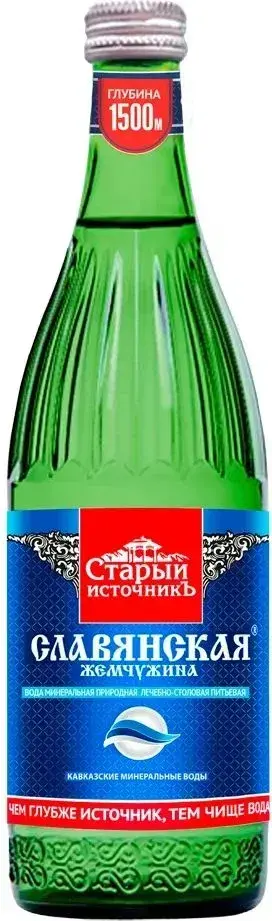 Вода газированная Славянская Жемчужина минеральная природная лечебно-столовая в стекле, 0,5 л