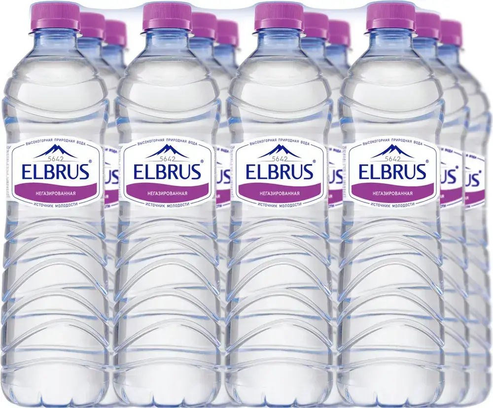 Вода негазированная Эльбрус минеральная природная, 12 шт х 0,5 л