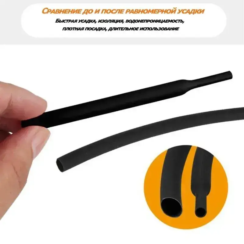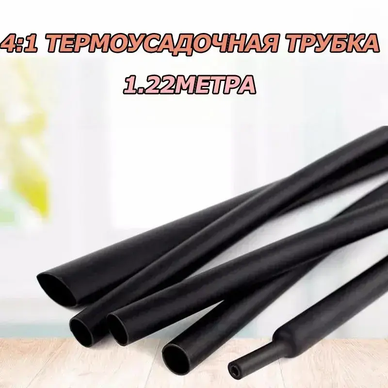 Водонепроницаемая термоусадочная трубка диаметром 20 мм с клеевым слоем, соотношение термоусадочных свойств 4:1, черная, 1,22 метра