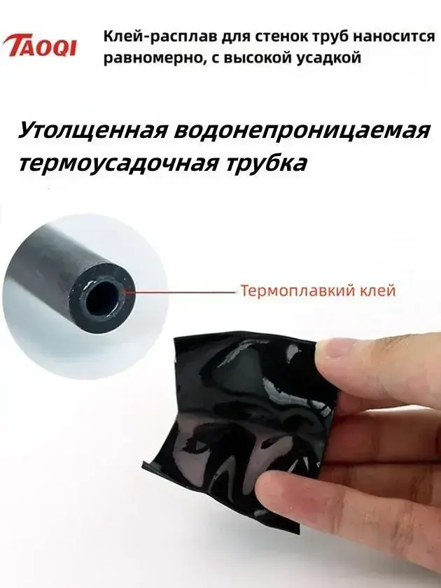 Водонепроницаемая термоусадочная трубка диаметром 8 мм с клеевым слоем, соотношение термоусадочных свойств 4:1, черная, 1,22 метра