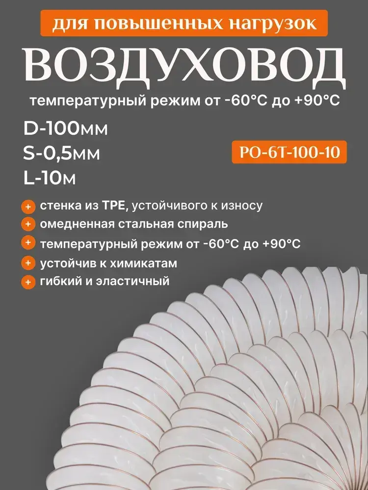 Воздуховод из TPE эластомера для повышенных нагрузок (диаметр 100мм, длина 10м), Texonic PO-6T-100-10
