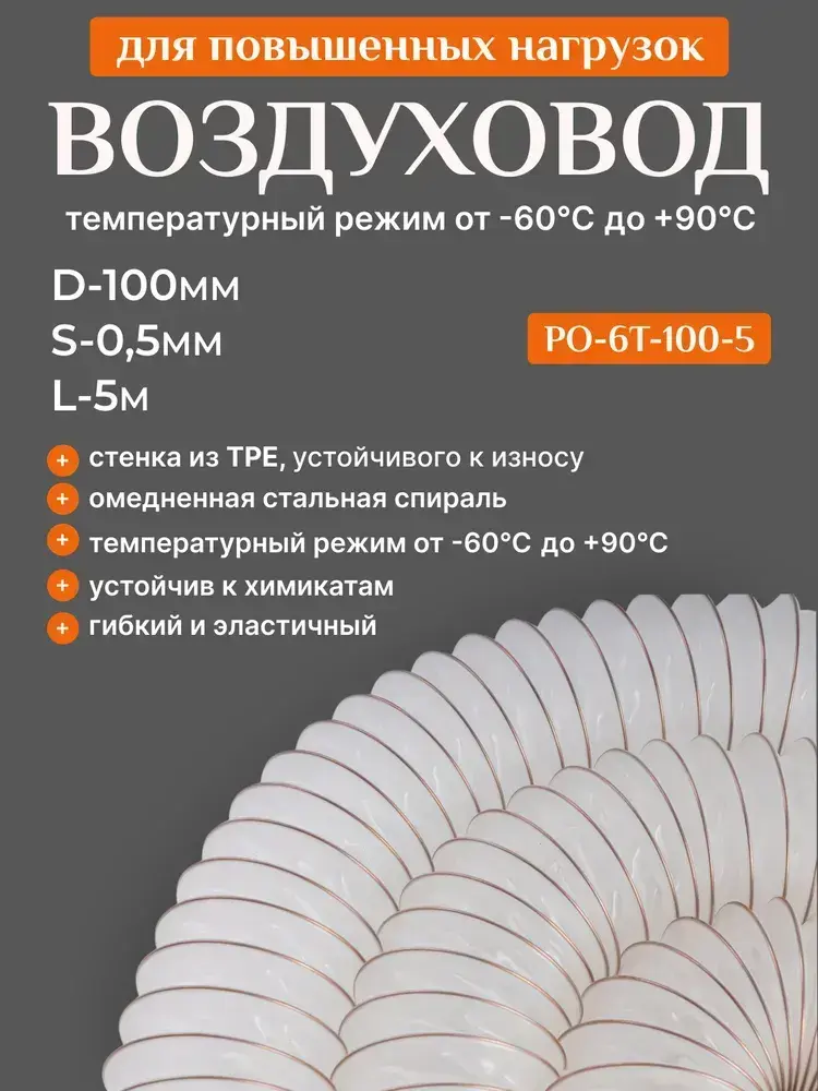 Воздуховод из TPE эластомера для повышенных нагрузок (диаметр 100мм, длина 5м), Texonic PO-6T-100-5