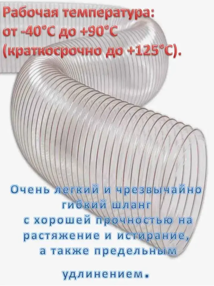 Воздуховод, шланг полиуретановый, армированный омедненной проволокой, шланг для аспирации и стружкоотсоса 100мм