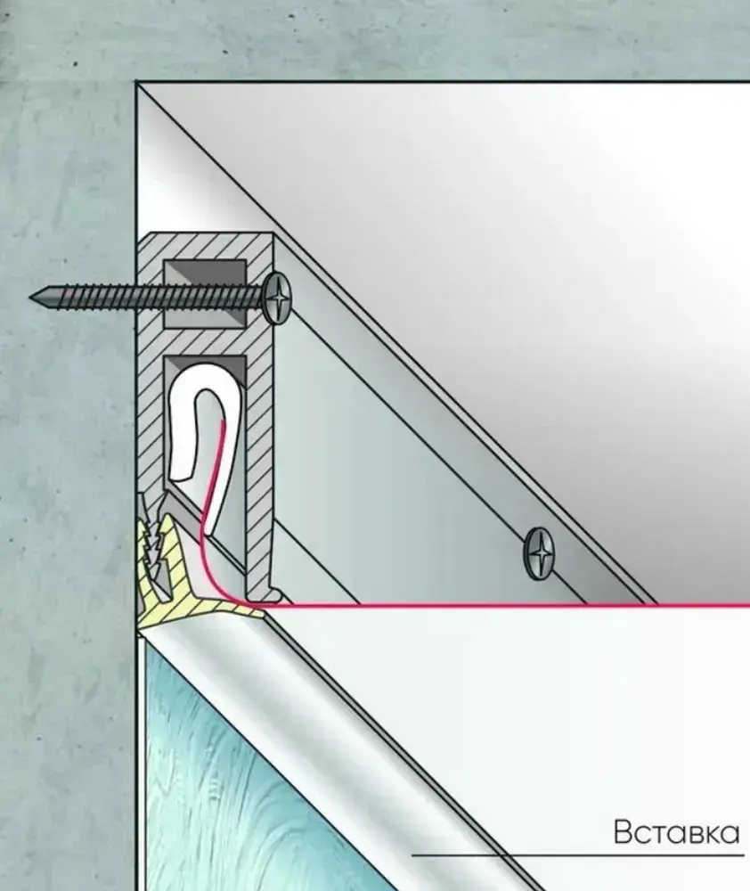 Вставка заглушка для натяжного потолка, 20 м, белая / плинтус ленточный для маскировки стыков в ванной, кухне и комнате