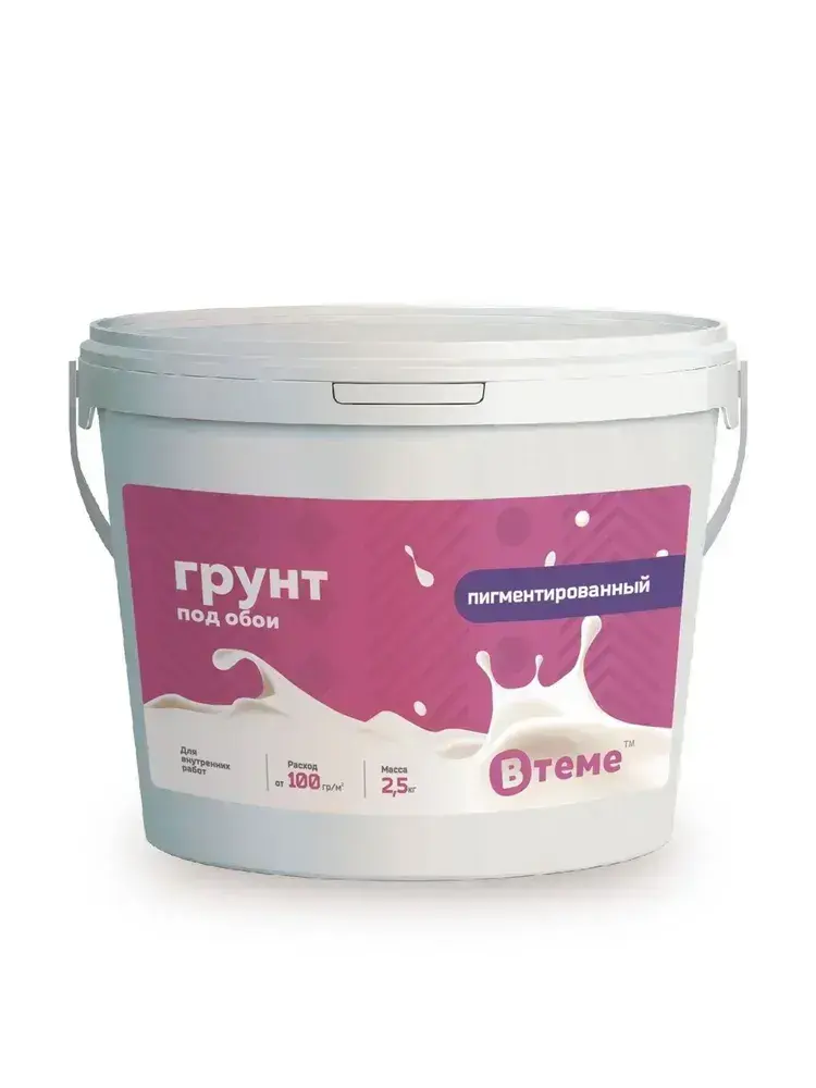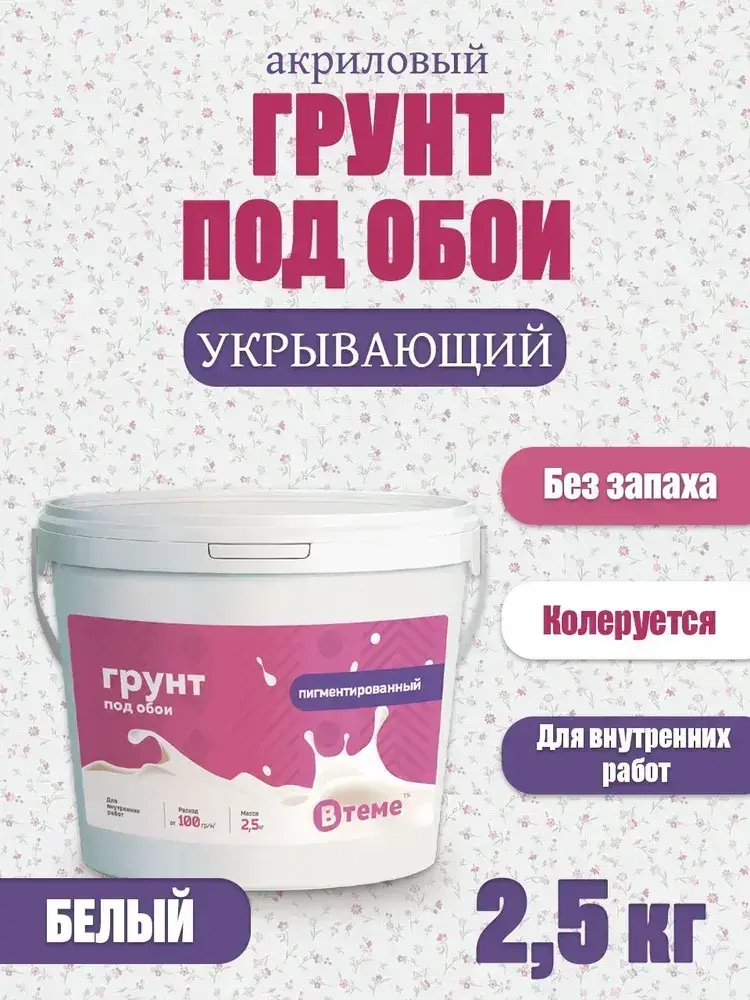 ВТеме Грунтовка для стен под обои акриловая пигментированная укрывающая белая 2,5кг