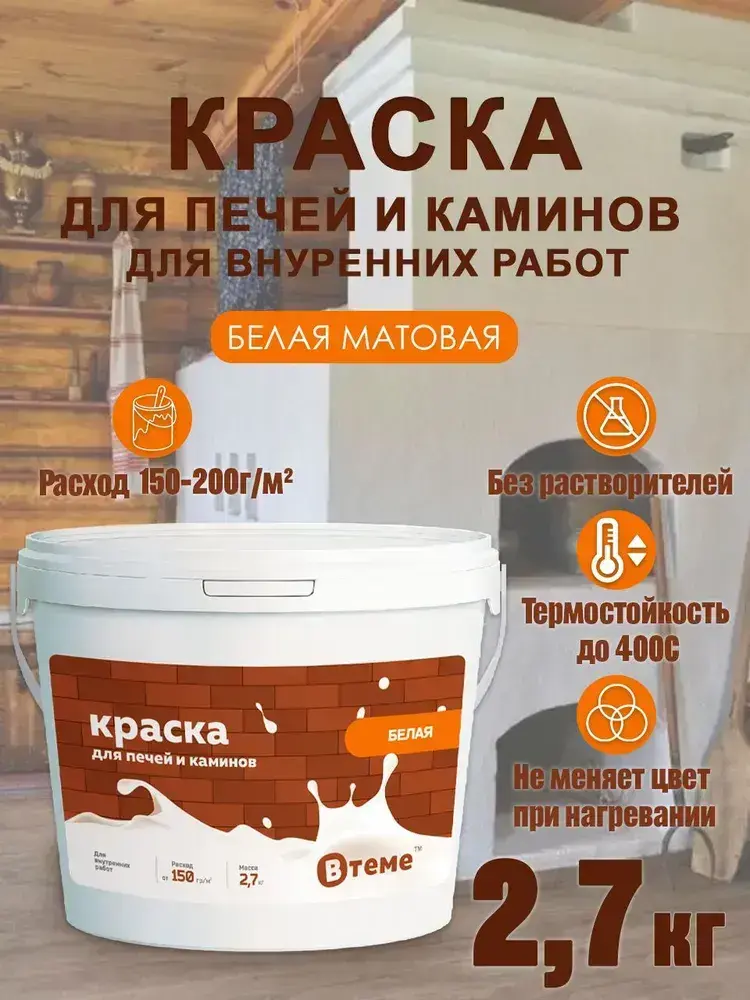 ВТеме Краска для печей и каминов термостойкая акриловая без запаха белая матовая 2,7кг