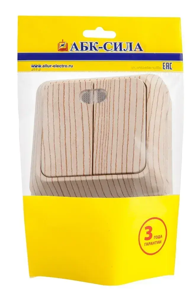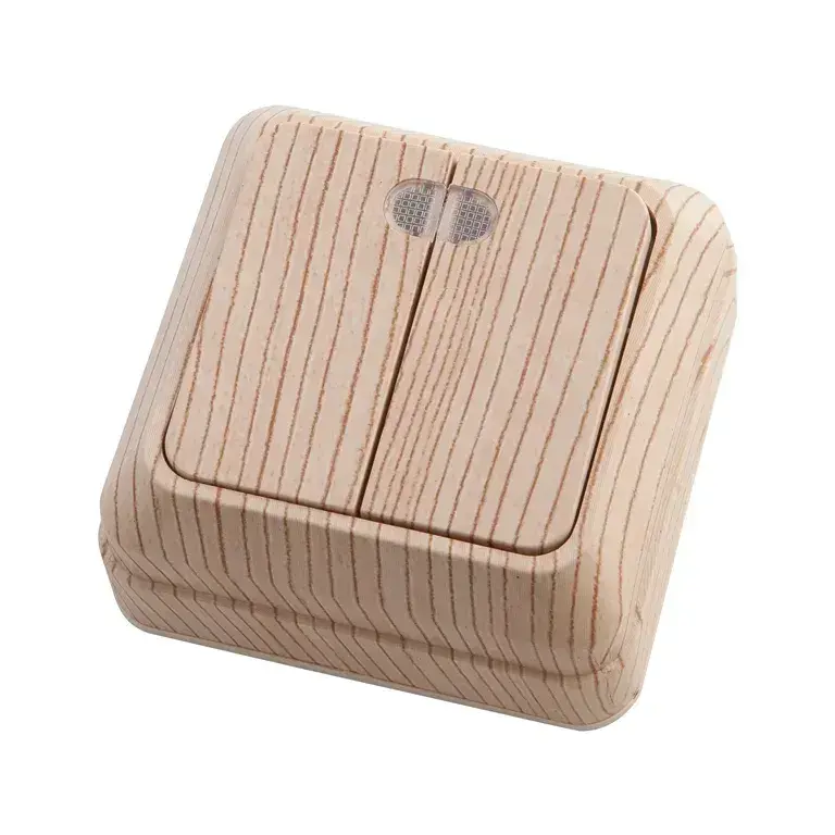 Выключатель АБК-СИЛА АЛЬТАИР двухклавишный с подсветкой сосна