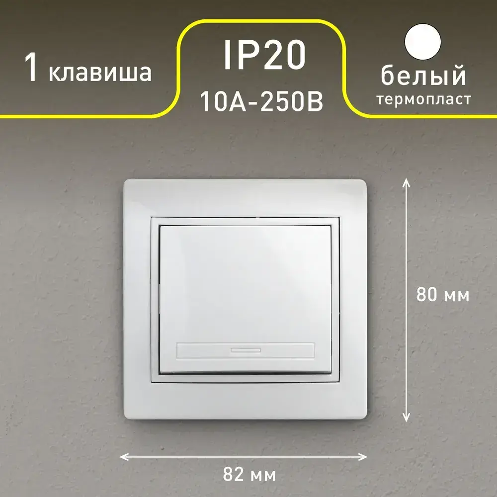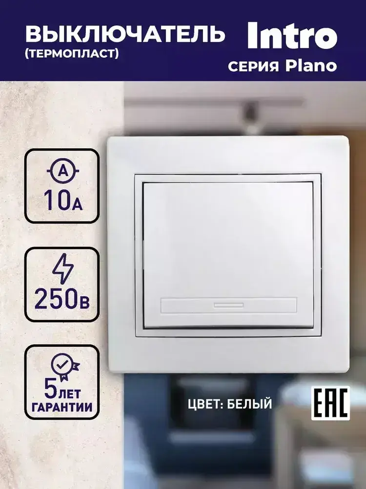 Выключатель Intro Plano 1-101-01 одноклавишный 10А-250В IP20 СУ белый