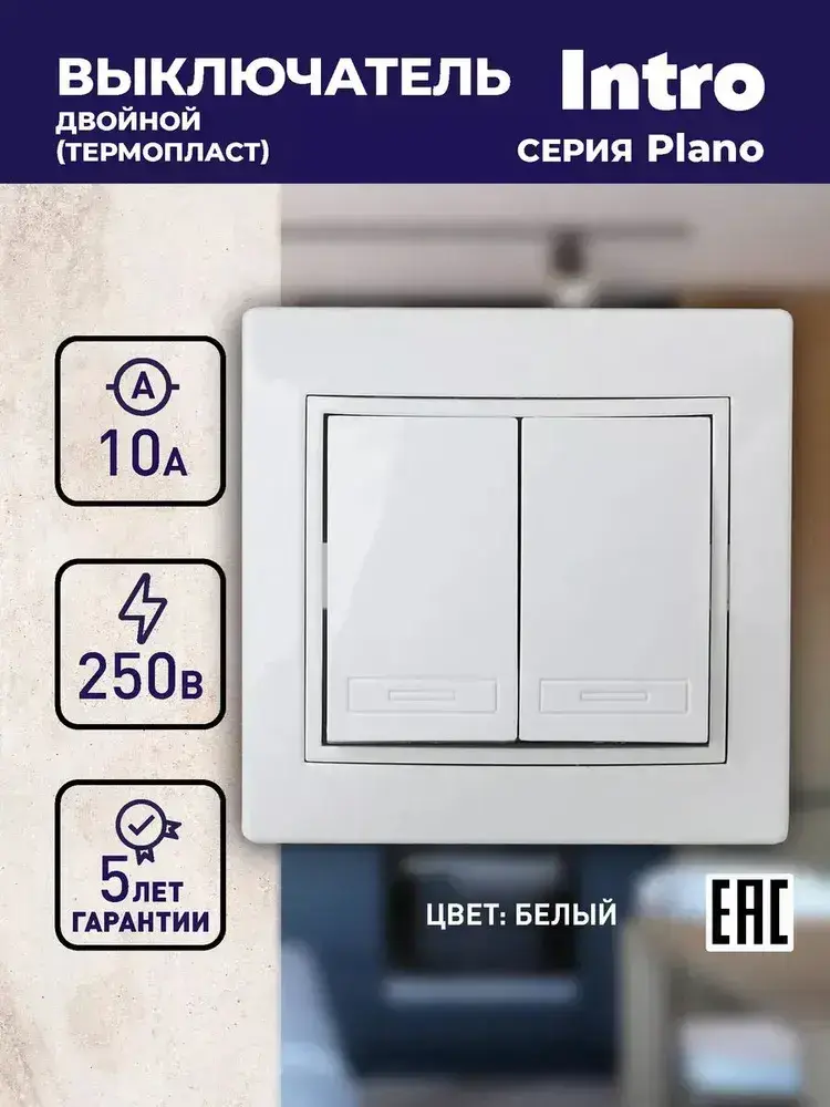 Выключатель Intro Plano 1-104-01 двухклавишный 10А-250В IP20 СУ белый